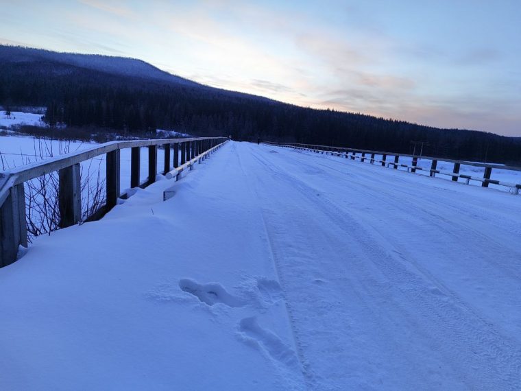 По неизвестной причине в этом году, дорожки практически не чистя Красный мост через реку Кута в районе Курорта. Хотя это единственный способ проезда грузового транспорта в сторону Туруки и Ленских дач, никто не спешит очищать его от снежного наката.